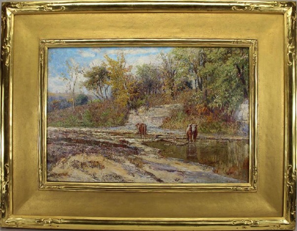 Painting Of Cows Watering Near A River In A Springtime Landscape By Willard Leroy Metcalf On Artnet
